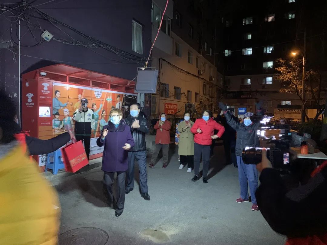“我和我的祖国,一刻也不能分割,无论我走到哪里,都流出一首赞歌,我歌唱每一座高山,我歌唱每一条河......”现场激情盎然,氛围热烈,大家一起唱起了歌曲《我和我的祖国》《我的中国心》......还有楼上的居民打开窗户,挥舞着手臂,加入合唱团。