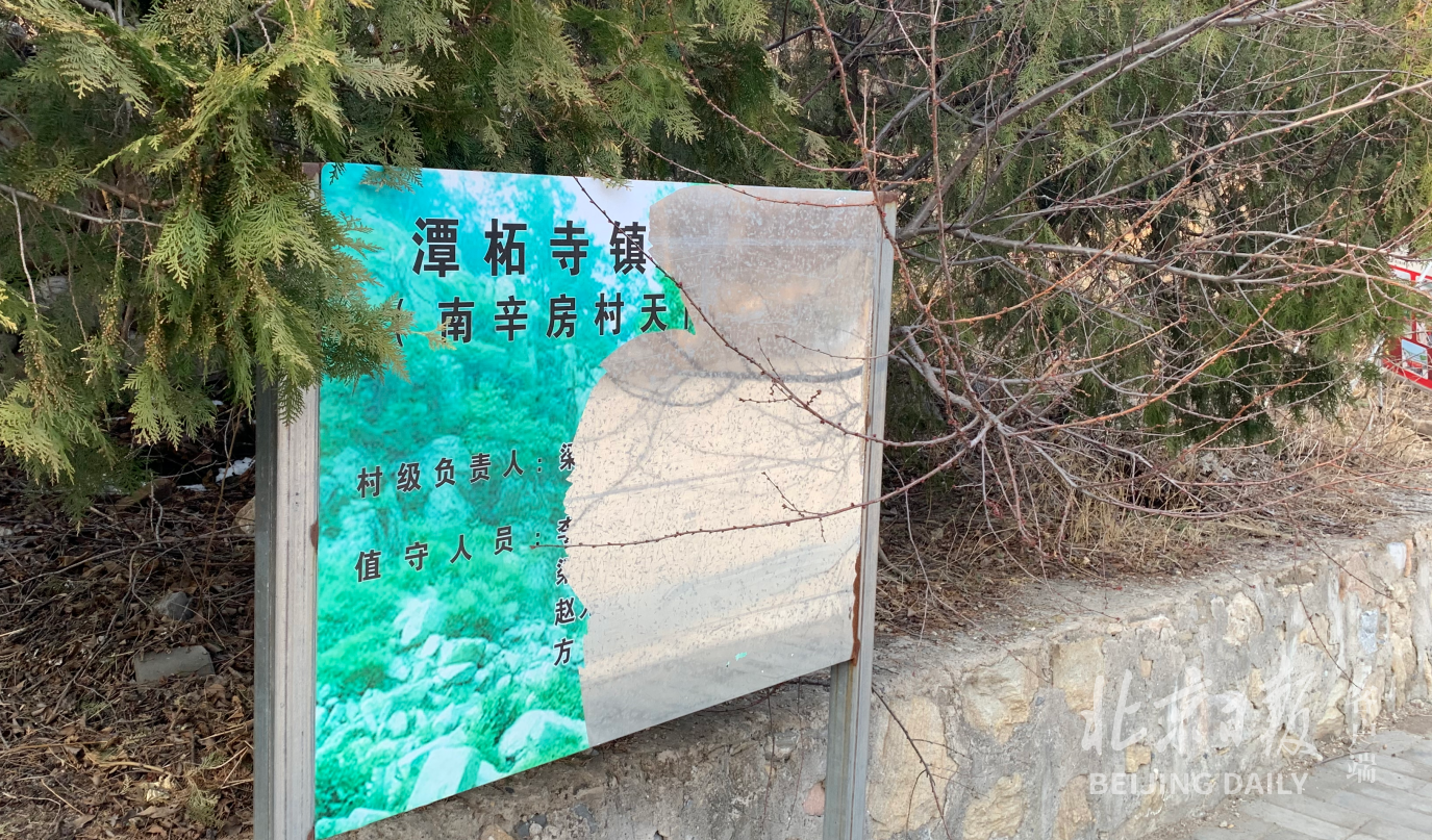 在公园东北门外有两块牌子,牌子上的字模糊不清,近半的内容已经脱落。一块牌子依稀能辨认出“天门山森林公园游览须知”,另一块则有“潭柘寺镇”“村级负责人”等字样。“景区早在四五年前就废弃了。”一位南辛庄村民告诉记者,他也不知道景区为什么被废弃,废弃后人倒是可以随便进出了。这两周因为疫情反复,村里在进入村庄的路口和天门山东北门设立了两处值守点,劝返过来的游客。“预计清明前后可以恢复扫码进入。”村民说。
