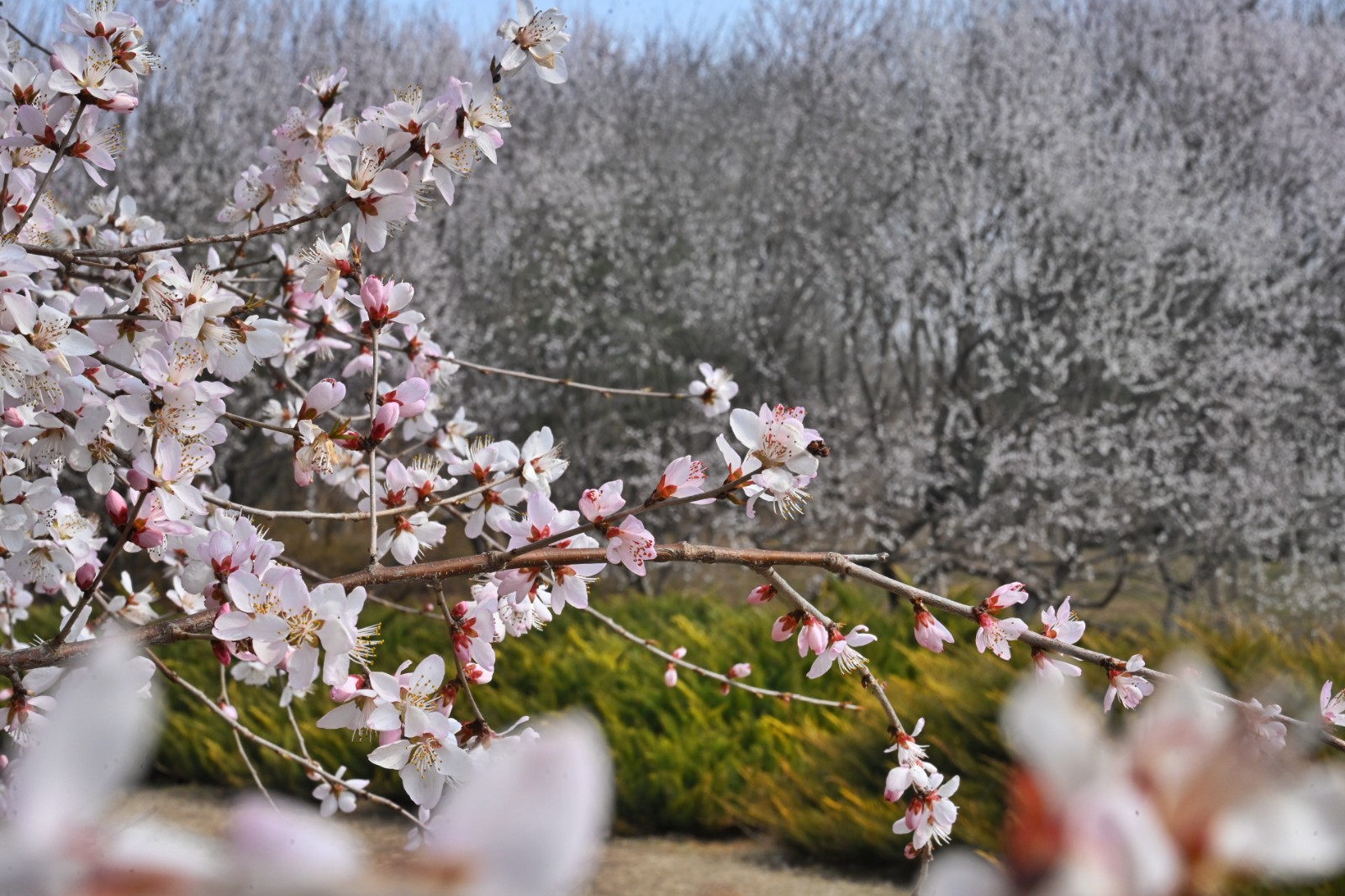 奥林匹克森林公园第11届花卉观赏季暨春花展近日开幕,记者3月23日探访时看到,园内的山桃花、迎春花已盛放。本次“春花展”花期长、品种多,从3月中旬至5月中旬近分批次可欣赏到30余个品种、10万余株的春季花卉。