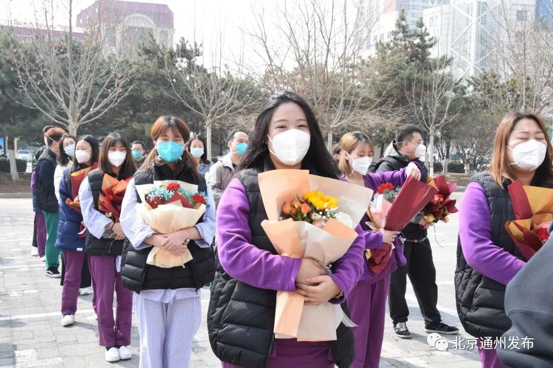 通州医疗队员们手捧鲜花参加欢送仪式