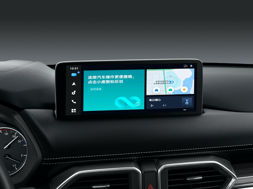进入车内,新MAZDA CX-5的品质座舱实现了10.25寸高清可触控中央显示屏、7寸TFT多功能液晶仪表盘,无线Carplay和Carlife、全系标配MZD悦联系统四大进化,既满足了驾驶者视野的清晰聚焦,又满足了用户的智能化需求。
