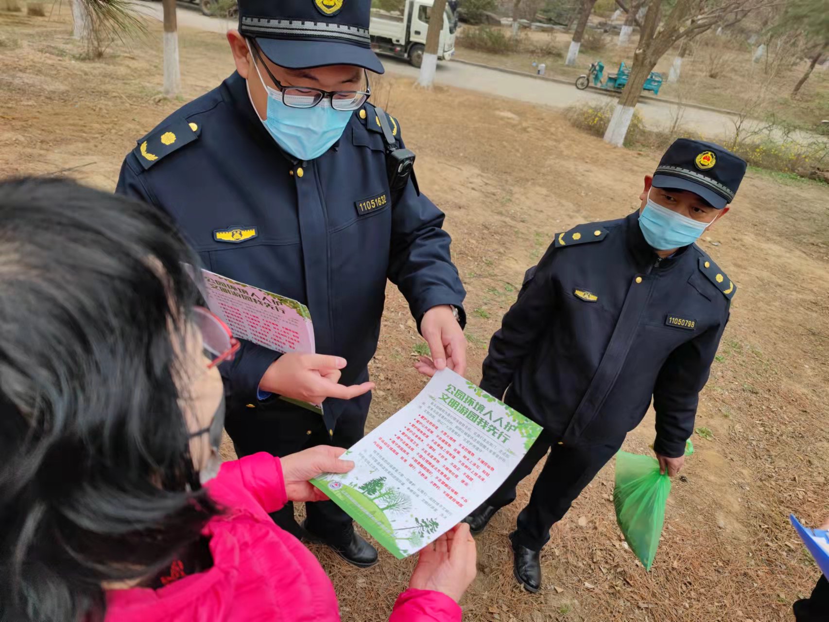 3月24日上午,市城管执法局与市园林绿化局联动朝阳区城管执法局、奥运村街道综合行政执法队、公园管理单位,在奥林匹克森林公园开展联合检查。在检查中,执法人员向游客宣讲《北京市公园条例》等相关法律法规,并对个别不文明游园行为进行及时劝阻和制止。