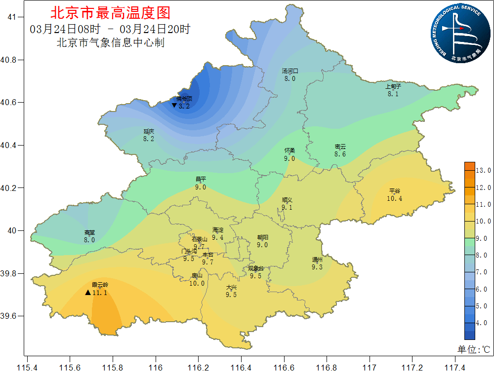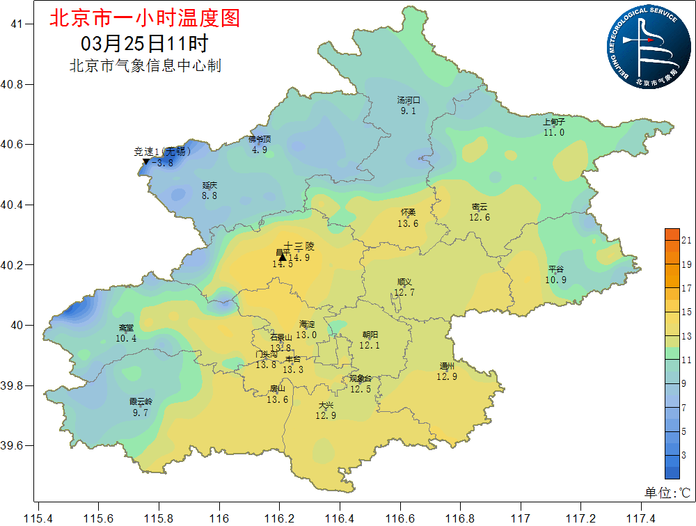 ☛ 今天早晨有轻雾或雾,能见度差,中午前后能见度有所好转;今天白天天空云量较多,风力不大,气温有所回升,11时观象台气温为12.5℃,预计午后最高气温会升至15℃上下;空气干燥,请及时补充水分。