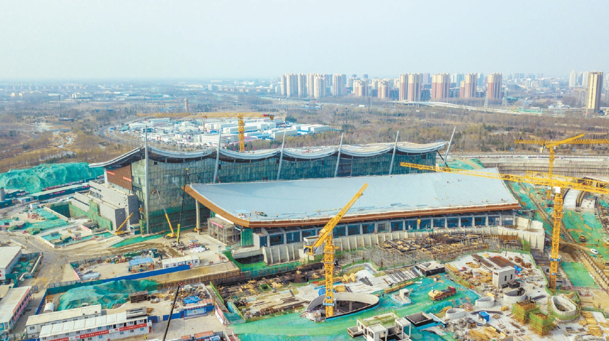 被誉为“运河之舟”的首都博物馆(东馆)进入外装和屋面的收尾阶段。图为航拍视角下的首都博物馆(东馆)。