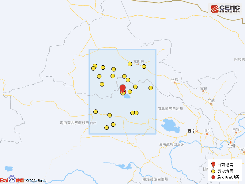 周边县城:震中距德令哈市126公里、距甘肃嘉峪关市164公里、距甘肃肃州区172公里、距大柴旦行政委员会186公里、距天峻县200公里,距海西蒙古族藏族自治州125公里,距西宁市445公里。