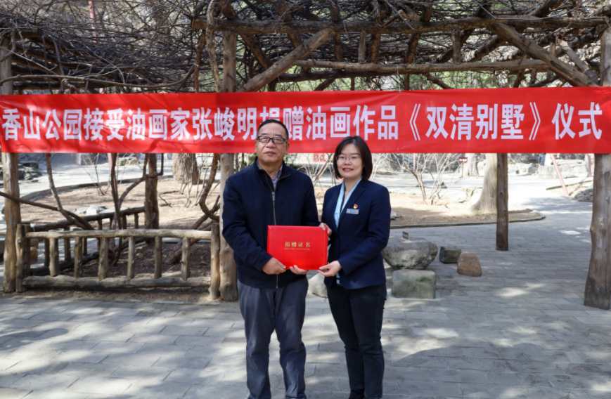 3月26日,香山公园接受油画家张峻明捐赠油画作品《双清别墅》仪式在香山革命纪念地旧址双清别墅举办。