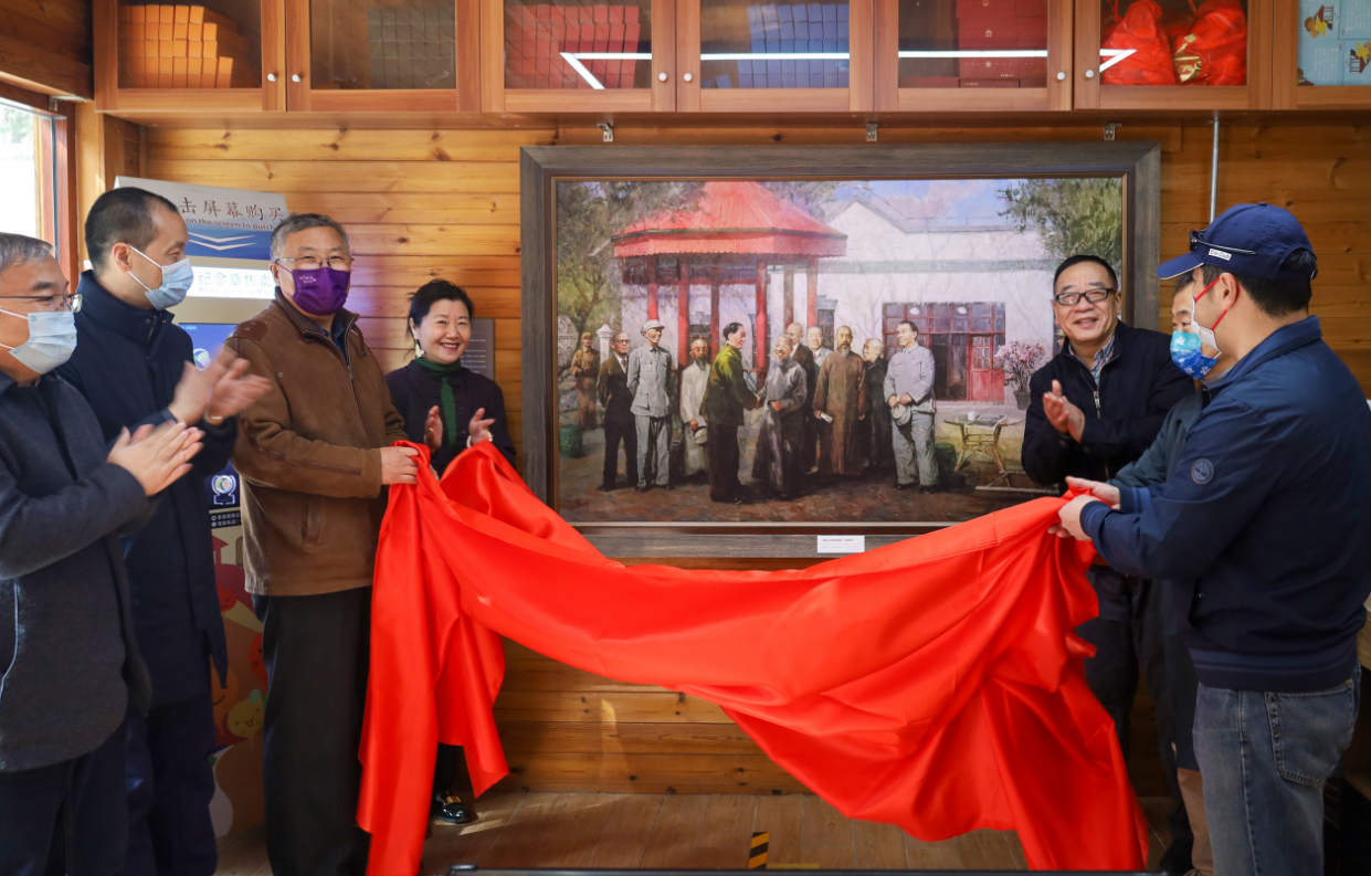 捐赠仪式上,中国美术家协会理事、北京美术家协会副秘书长柳妍与张峻明先生共同为画作揭幕。香山公园副园长康玲对捐赠画作表示衷心感谢,在致辞中谈到,73年前的3月26日是毛主席在双清别墅接见第一位民主人士黄炎培的日子,与这幅画作的主题非常契合,选在今天举办捐赠仪式非常有意义,让画作回归到历史发生地面向公众展出,既体现出一位画家回馈社会的责任感,更增强艺术作品为人民服务的宣传力和感染力,相信今后通过画作会使市民游客更加深入地了解到中共中央在香山为新中国奠基的历史篇章。捐赠后,画作原件将收入库保存,复制作品在双清别墅红色书屋进行展出。