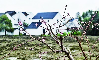 浙江省湖州市东林镇泉益村,种植的景观桃花初露芬芳。新华社发