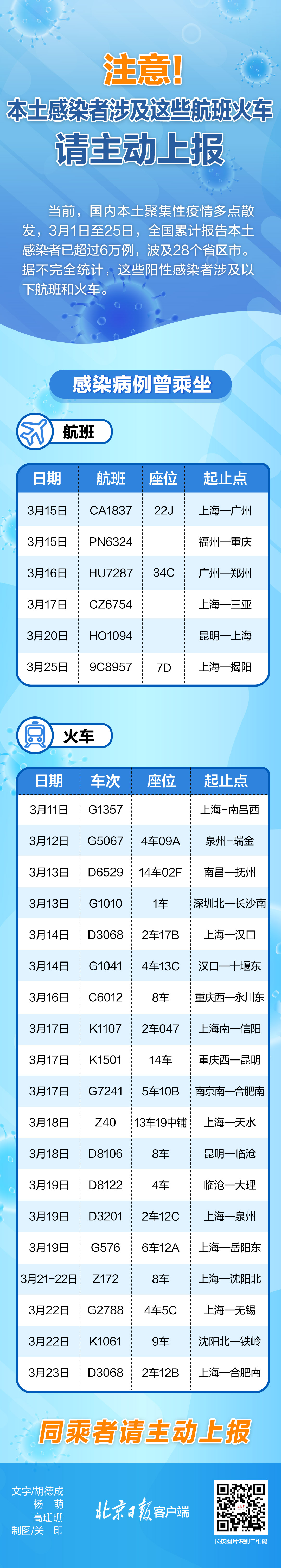 注意!本土感染者涉及这些航班火车,同乘者请主动上报