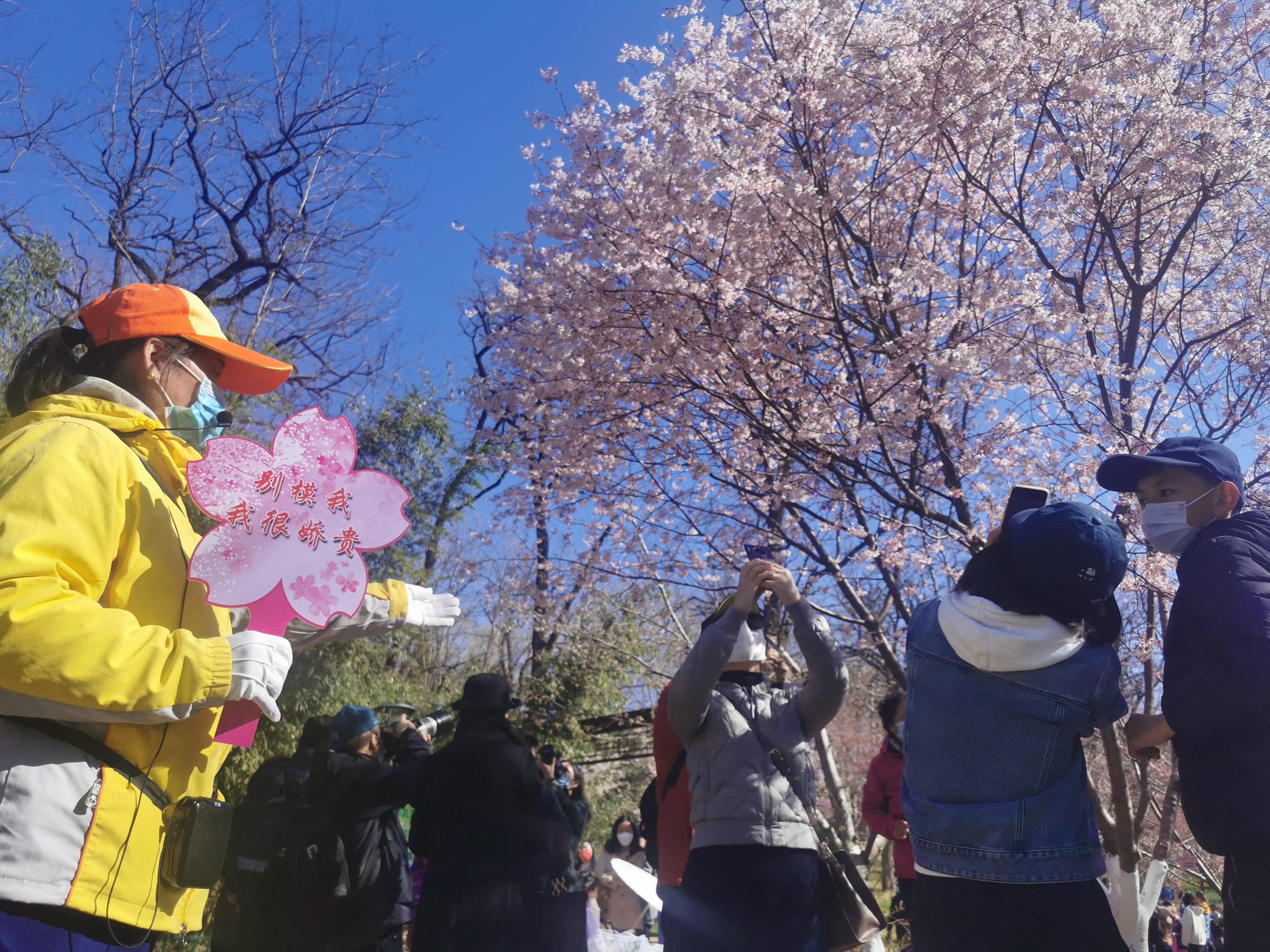 进入樱花暨春花观赏期之际,为了让广大市民游客安全赏花、文明游园,公园全体职工停休,与80名首都文明引导员、市公园管理中心“青年突击队”志愿者、保安保洁等800余名工作人员在园内进行全方位、不间断巡查巡视,做好游客安全有序游览、文明游园引导等工作。并联动属地公安、街道、城管、交通等部门做好园区及门区的秩序管理。