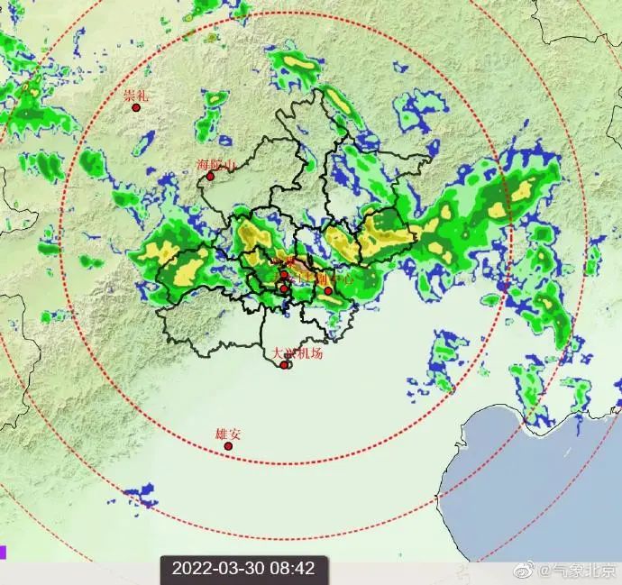 据@气象北京 最新消息,目前降水回波正自西向东逐渐减弱停止,雨水散去,天空将转为多云天气。