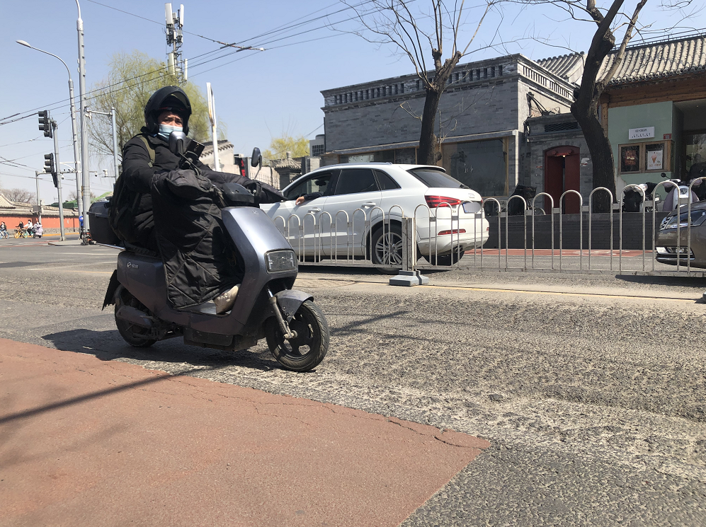 “这坑坑洼洼的,一边骑一边‘哆嗦’。”近日有市民反映,地安门外大街北向南方向,以鼓楼为起点,一直到烟袋斜街东口,这段70多米的柏油路如今像搓衣板一样凹凸不平,路面风化现象严重,无论是机动车还是临时借道的非机动车,走着都不舒服。前天下午,记者在现场看到,市民提到的这段坑洼路在地安门外大街的最北端,机动车道路面凹凸不平,裂纹一道接一道,驶过的车辆无不颠簸。