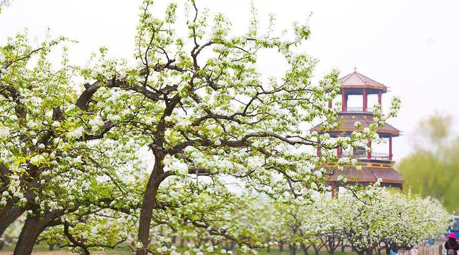 古梨园中,年岁最长的一棵名叫“贡树”,有400多年树龄,它结出的果子,曾被明朝万历皇帝御封为“金把黄”。除了与“贡树”近距离接触,游客还能登上瞭望塔,感受“千树万树梨花开”的浪漫。