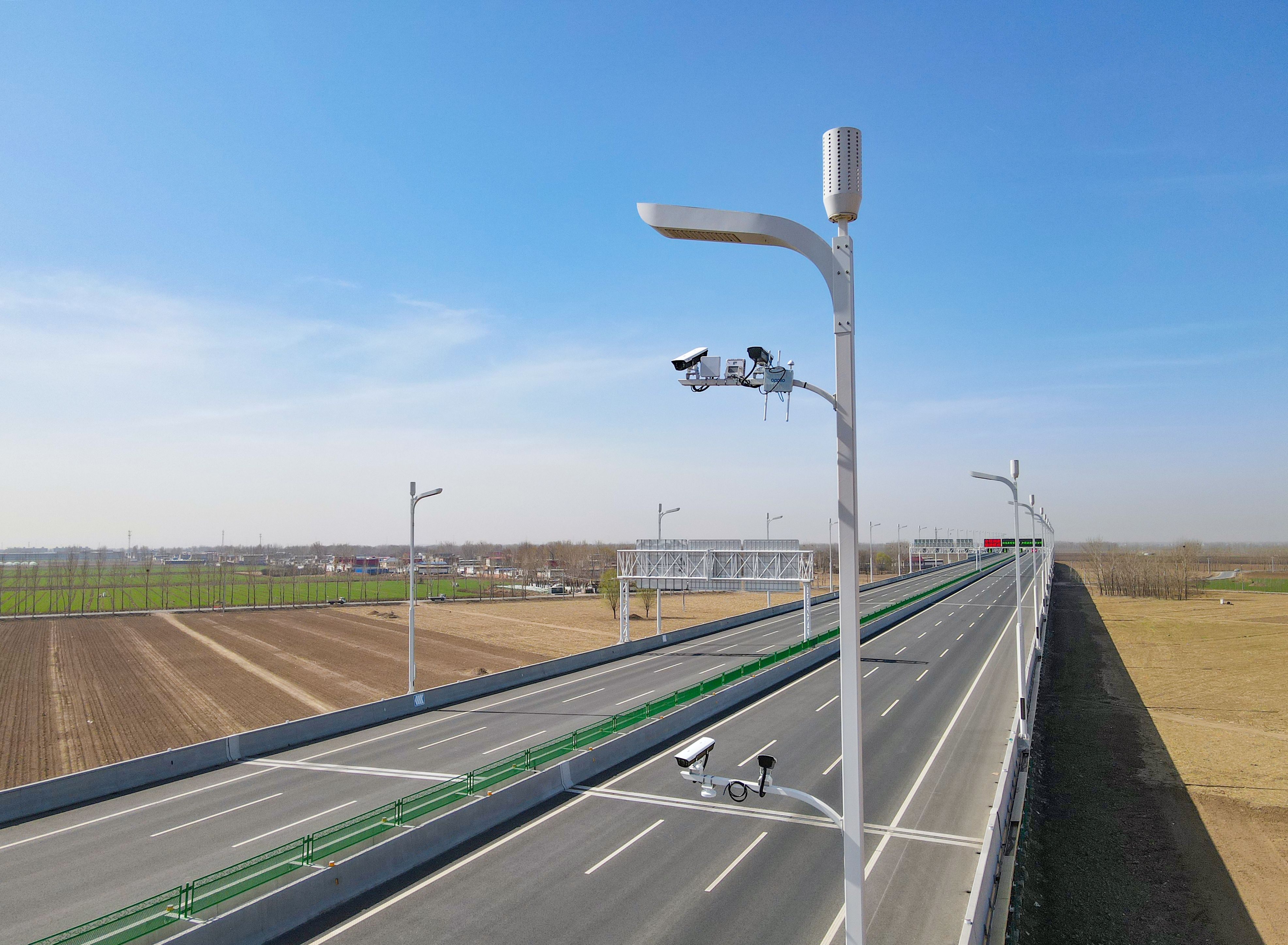 荣乌高速公路新线全线共设置新型智慧门架158个,门架上集约设置了超距雷达、卡口摄像机、LED信息屏等,未来可加装5G等设备,实现“一架多用”。