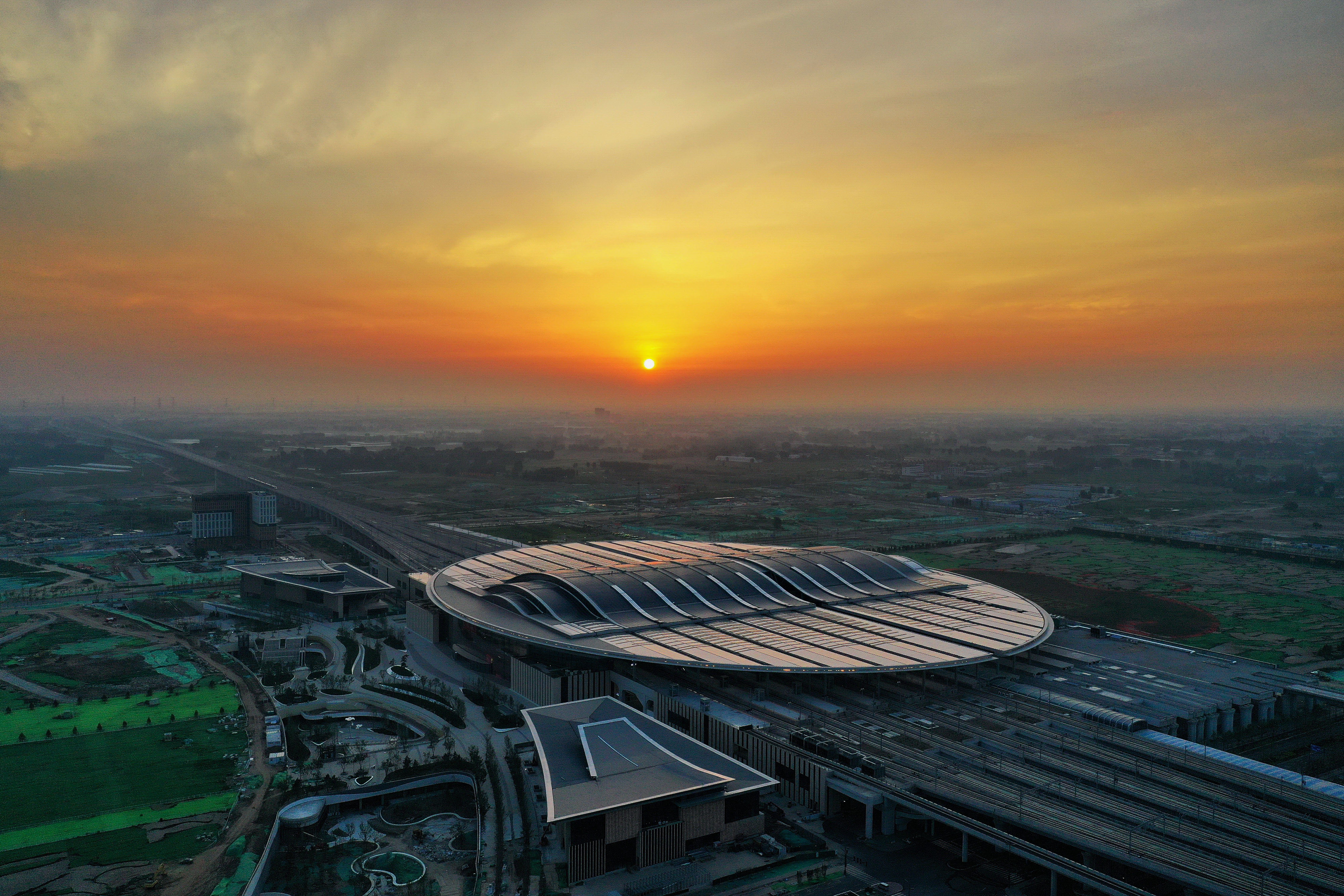 “光谷”采光,建成长556米、宽15米的能量收集场;清水混凝土技术,打造192根三维曲线型“开花柱”;高铁数字孪生,构建全过程、全专业运用BIM(建筑信息模型)设计的智能数字模型;全封闭声屏障,在高速铁路上修建847.25米“隔音隧道”;超大光伏屋顶,铺设4.2万平方米光伏建材,年均发电量可达580万千瓦时;5G信号全覆盖,万物互联。这些亮点满满的智能化设计,都来自京雄城际铁路。