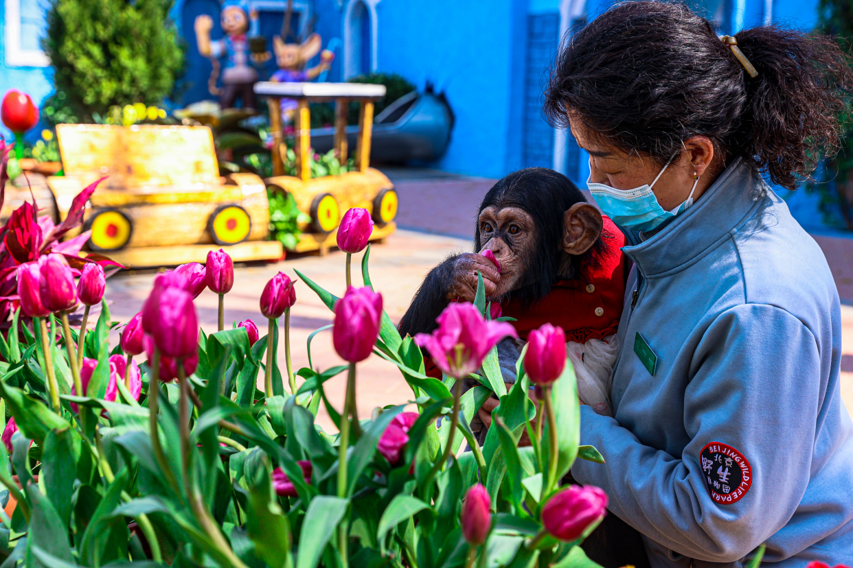 记者在园区看到,除了各色郁金香,桃花、梨花也正争相开放,为柳绿草青的春天增添了斑斓色彩。而此时,小动物们也为春天的到来欢呼雀跃,开屏的孔雀、嬉戏的天鹅、跳跃的小鹿......就连“明猩”瑞莉也在育幼员的带领下出来赏花了。