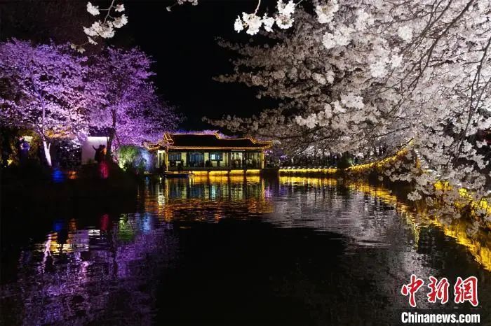 无锡太湖鼋头渚夜樱。孙权 摄