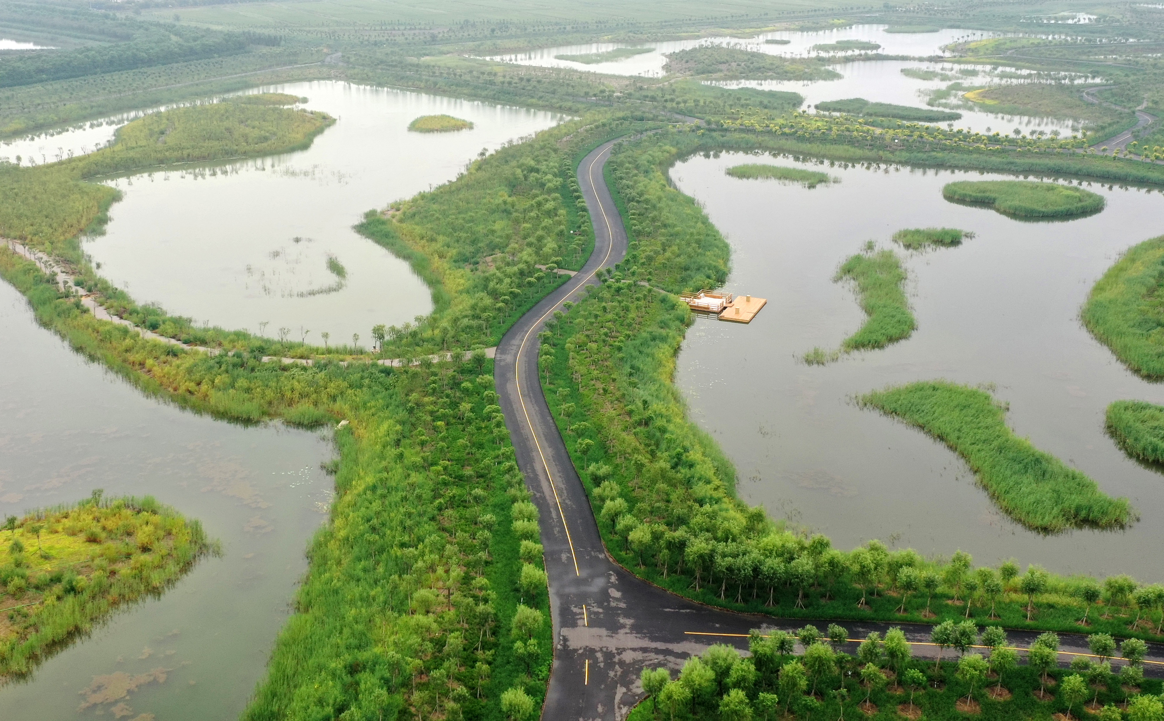 天津西青生态廊道一景(2021年8月16日摄,无人机照片)。新华社记者 李然 摄