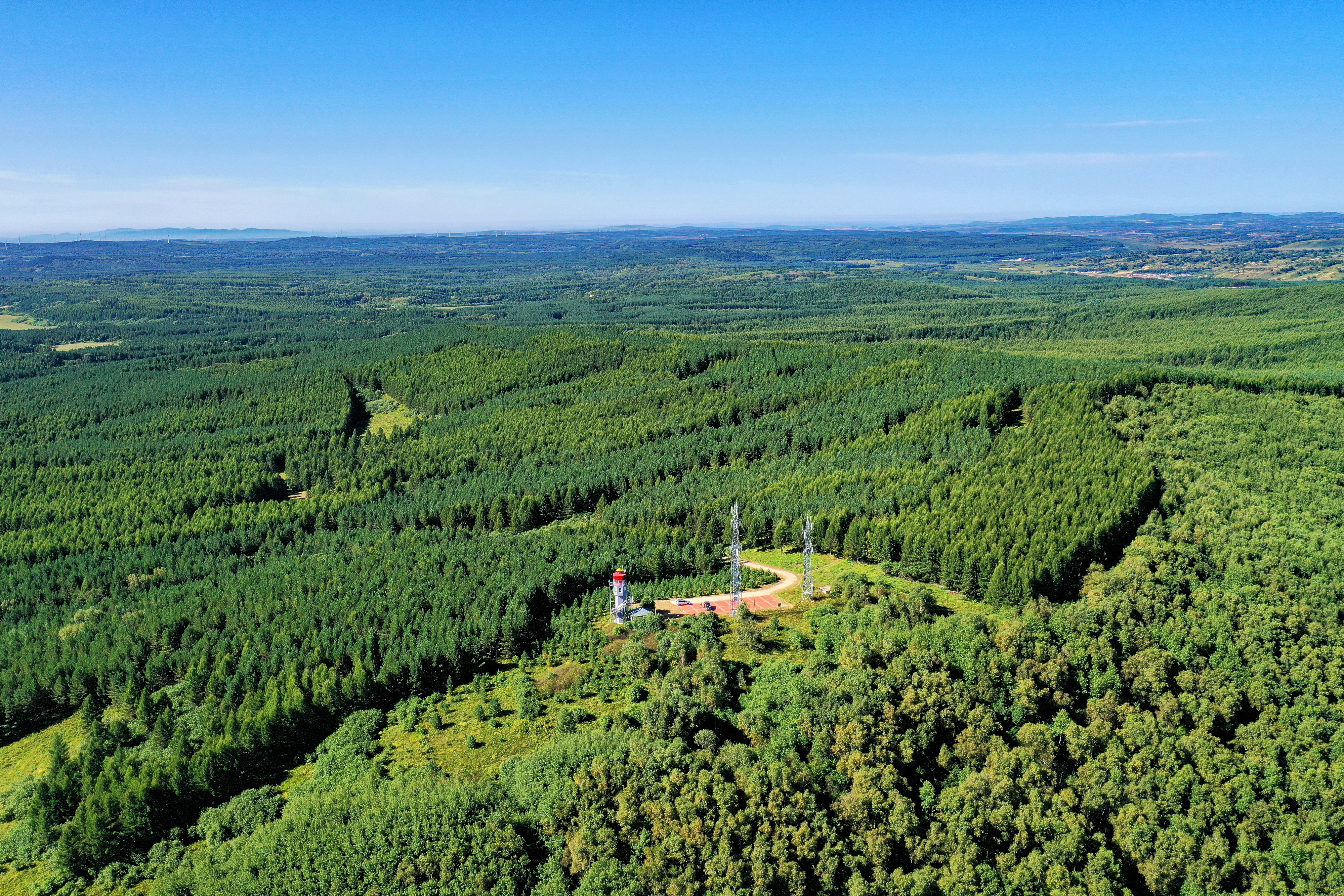 塞罕坝机械林场内的望海楼(2021年8月23日摄,无人机照片)。新华社记者 牟宇 摄