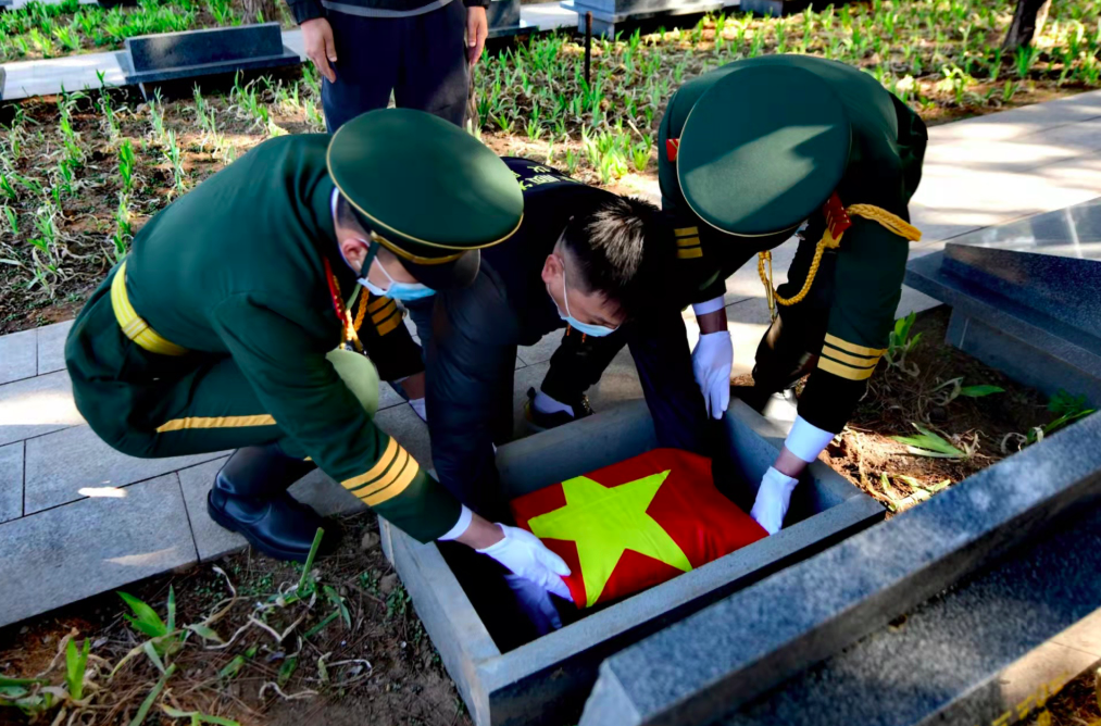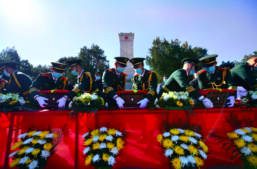 伴随着《思念曲》,5位烈士的骨灰盒在护卫队的护卫下依次从烈士纪念广场经烈士纪念碑送入烈士墓区。他们的墓碑上记载着生平,5位烈士牺牲时都年仅20多岁。他们的英勇牺牲换来了民族独立、人民解放和国家富强。目送的人群中不仅有烈士的家人,还有曾参与过战争的老兵和部分现役军人。“希望让烈士先辈们看到红色精神的新老传承。”密云区退役军人事务局褒扬纪念科负责人田野说。