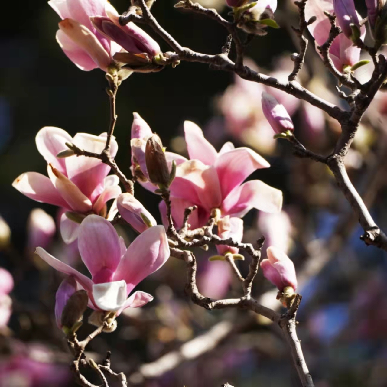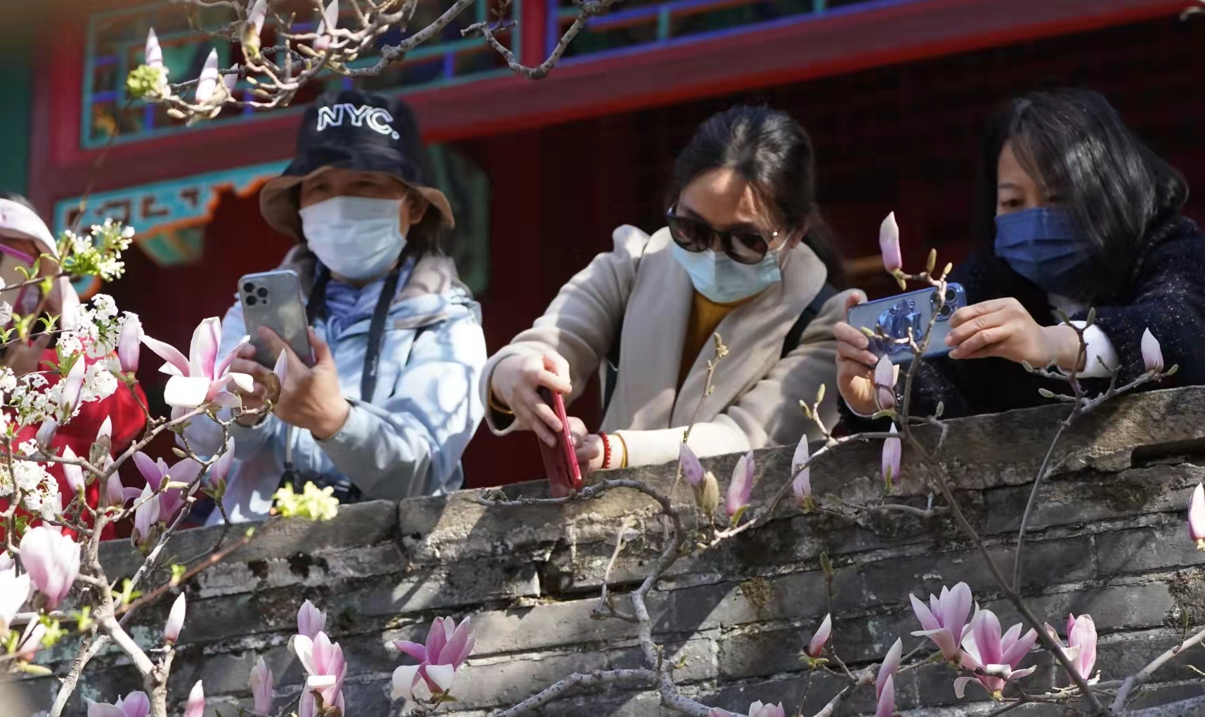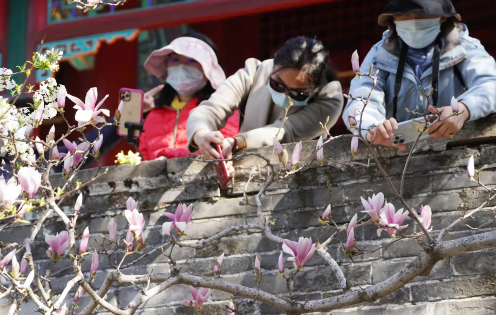 4月3日,许多游客赶来门头沟区潭柘寺景区一睹二乔玉兰的风采。相传三国时期大小二乔貌美如花,潭柘寺的这两棵玉兰树龄已达400多年,每年4月上旬盛花期,紫白双色的玉兰花如灿烂云霞,故被称为二乔玉兰。