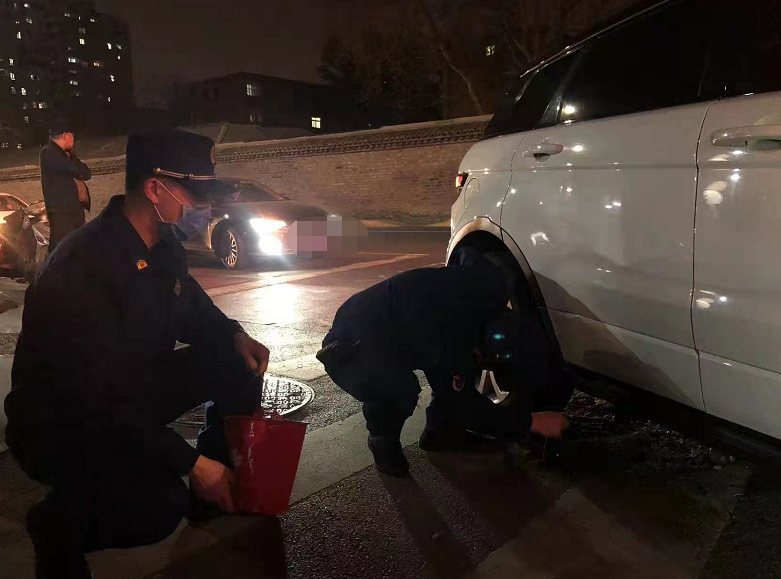 4月4日,在北京市东城区东四七条东口,一辆轿车停在路边,油箱一直漏油。这一幕恰好被执勤巡逻的朝阳门小型消防站的消防救援人员遇到,他们联合交警处理漏油,疏导交通,避免了意外的发生。
