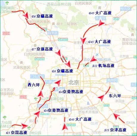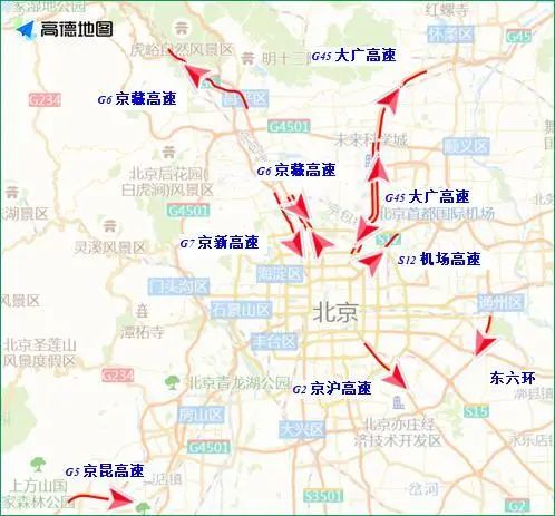 4日、5日12至20时,进京方向的交通压力将明显上升,其中京藏高速八达岭、居庸关、西三旗、北沙滩,京承高速黄港、太阳宫,京港澳高速西道口、琉璃河,京开高速榆垡、玉泉营等路段车流较为集中。