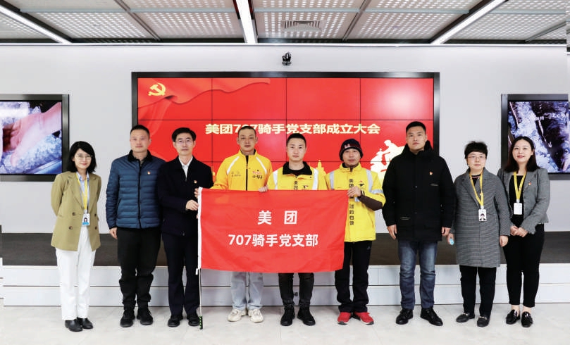 美团(北京)党委副书记来有为说:“在过去半年时间内,美团党委先后成立了朝阳、海淀、平谷、通州、丰台等6个外卖骑手流动党员党支部。现在,美团(北京)组建了707骑手党支部,这意味着骑手党建工作进入了新的发展阶段。”