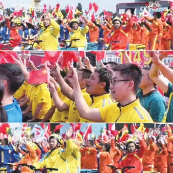 迈着整齐的步伐,解放军手握钢枪以方阵从高丰前方走过。迎风飘扬的五星红旗和身上的美团黄色工装交相辉映,高丰懂得,无论何时,都要不忘党员本色。