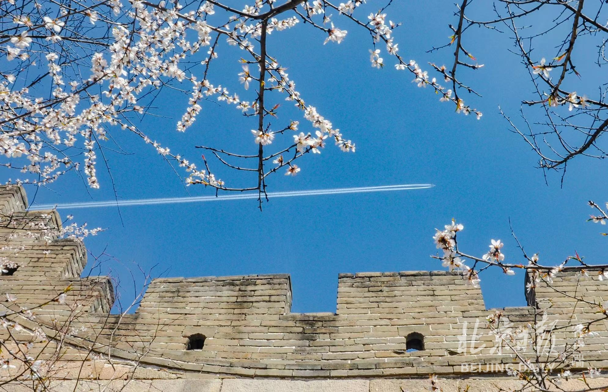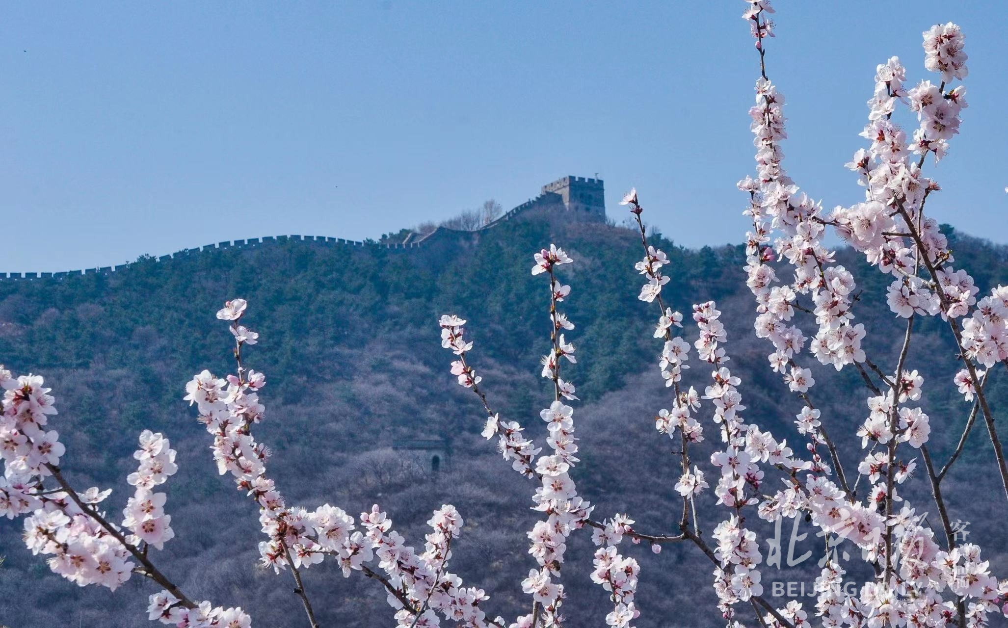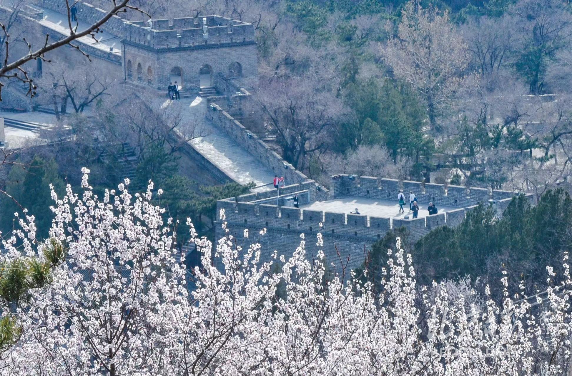 正是百花盛开的季节,这两天,八达岭长城景区漫山遍野的山杏花盛放,一簇簇、一团团浪漫柔美的山杏花与雄浑古朴的长城组成了一幅绝美画卷,吸引游人流连忘返。