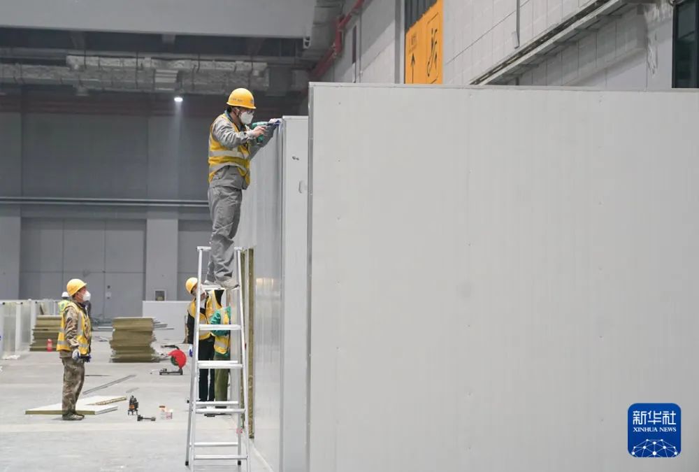 很多工序都是同步进行的,基本都是第一天完成地面铺设,第二天完成隔断搭建,第三天和第四天完成水电作业、“三区两通道”(清洁区、污染区和半污染区,医务人员通道和病人通道)搭建和通风系统作业。