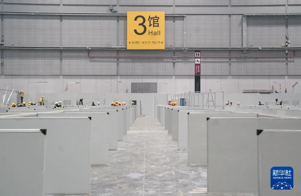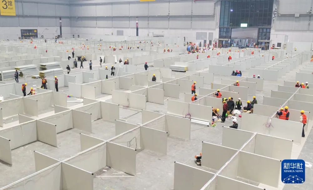 记者:“四叶草”的8个展馆根据各自条件,被改建成一层或两层的方舱,整个“四叶草”共被改建成14个方舱。最初设计时,每个方舱提供约3000个床位,总床位数在4万左右。因为这个项目的特殊性,现场边设计边施工,进一步挖潜,扩大床位数。根据最新的进展,每个方舱的床位数超过3000张,整体完工后将提供约5万张床位。