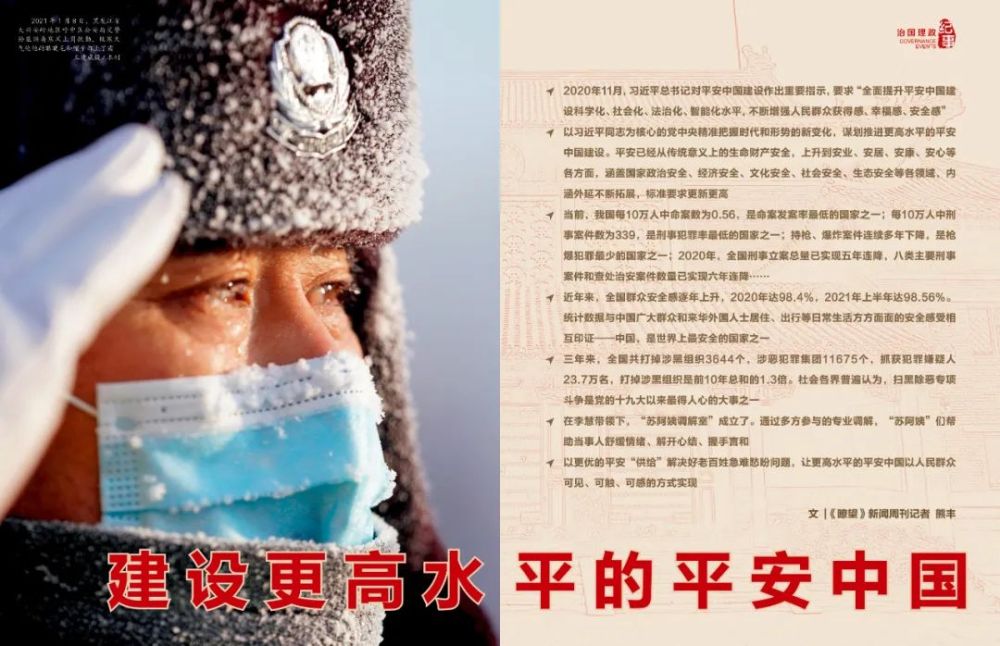 平安中国建设效果如何,人民群众最有发言权。国家统计局调查显示,近年来,全国群众安全感逐年上升,2020年达98.4%,2021年上半年达98.56%。统计数据与中国广大群众和来华外国人士居住、出行等日常生活方方面面的安全感受相互印证——中国,是世界上最安全的国家之一。平安中国正成为一张亮眼的国家名片。