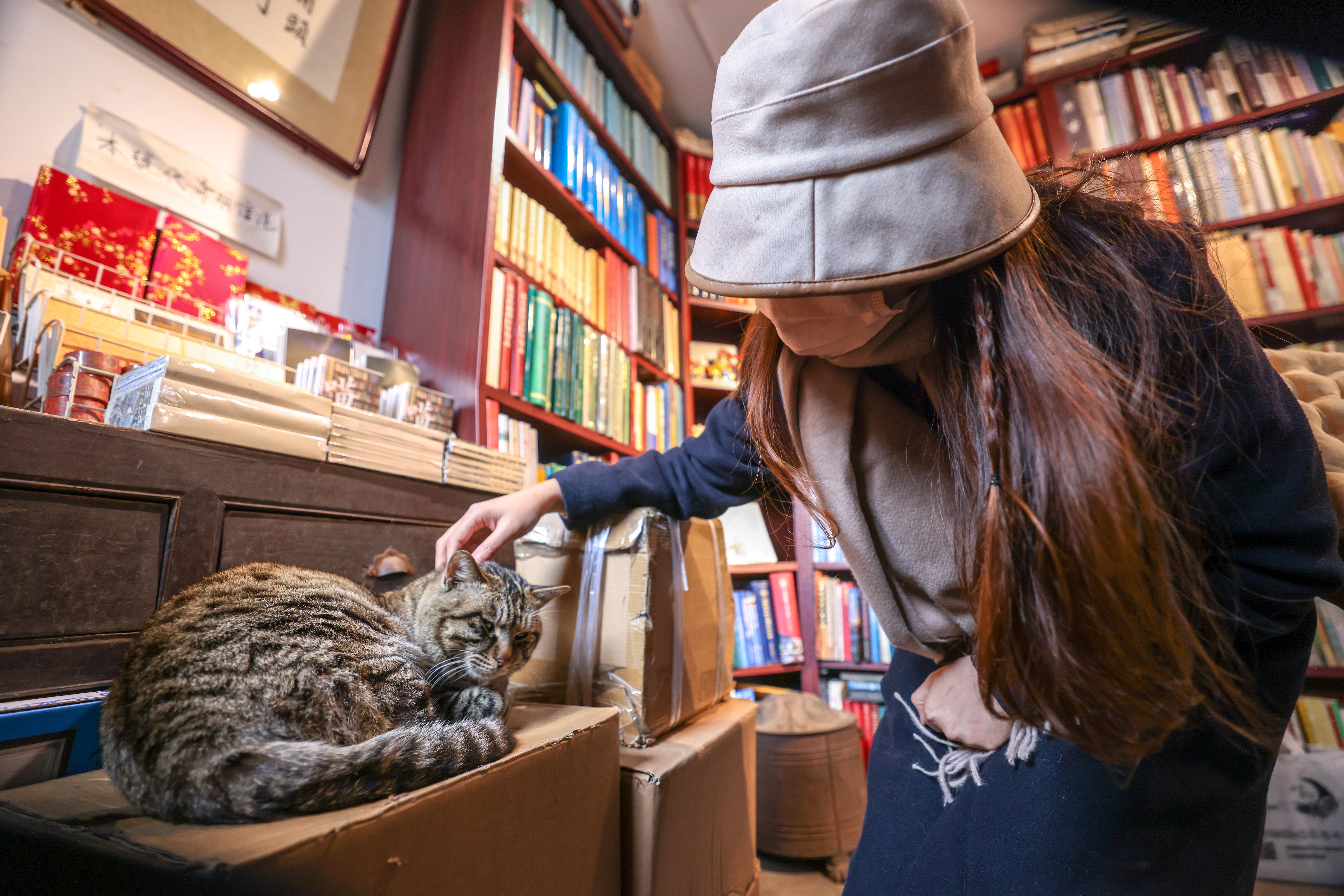 正阳书局的网红猫“砖爷”,性情温和,读者亲密接触。