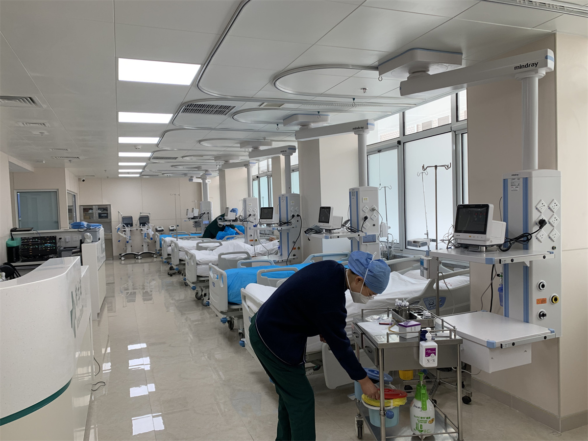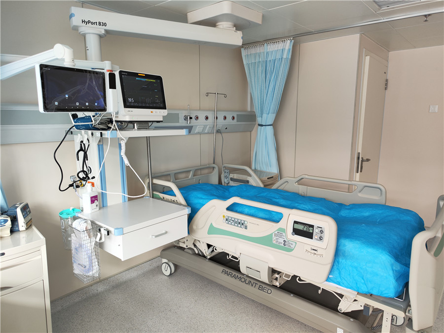 新病房大楼整体设计突出现代医疗理念,病房内房间设置、功能区划分、消防通道、中央空调系统、床旁呼叫系统等各个元素,既紧贴应急医学特点,又满足人性化特点。病房设有单人间、双人间、三人间、五人间等类型,每个房间均配备独立卫生间、衣柜、电视机等,卫生间设置侧边扶手等设施,防范跌倒风险,“一床难求”将得到有效缓解,让患者舒心就医、安心住院,享受到温馨舒适的就医体验。