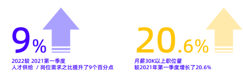 4月12日,脉脉发布《乘势而上人才流动与迁徙2022报告》,报告称,2022年第一季度的人才供给和岗位需求比例较2021同比提升9%,求职竞争难度加剧。