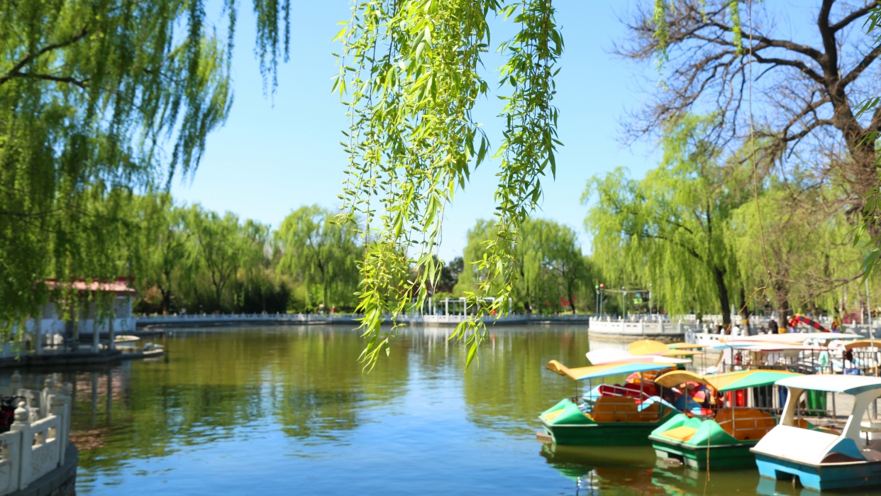 丰台花园里也是春意盎然,阳光明媚风轻柔,小桥流水配上随风摇曳的细柳,安静祥和。