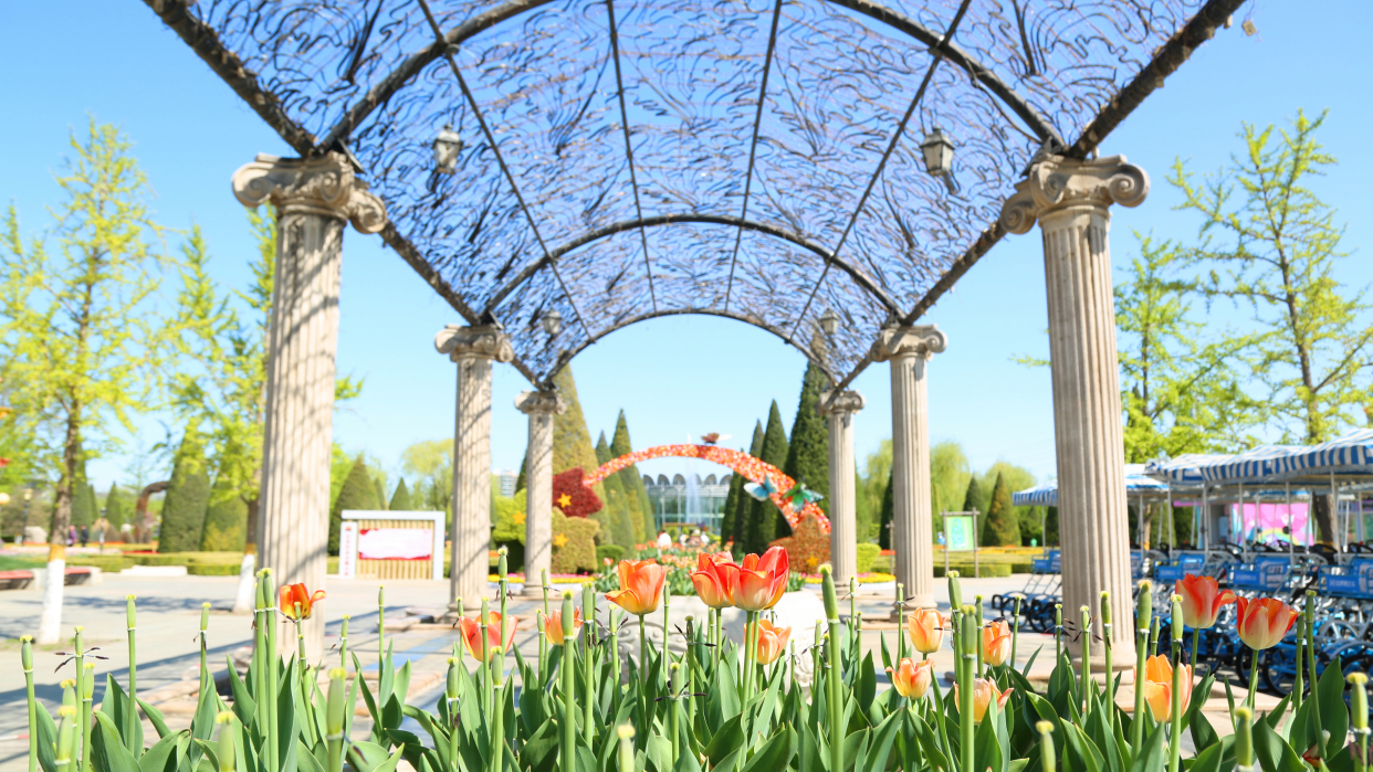 春日融融,和风阵阵,阳光灿烂,万物勃生。在北京世界花卉大观园中,五颜六色的郁金香随风摇曳,芬芳满园,重重叠叠的花瓣清新脱俗,宛如浑然天成的油画。园中的桃花、海棠、迎春也争芳斗妍,令人心旷神怡。满园的春花和湖中沐浴着阳光嬉戏游弋的黑天鹅,构成了一幅生态和谐的美好画面,为春日的公园增填满满生机。