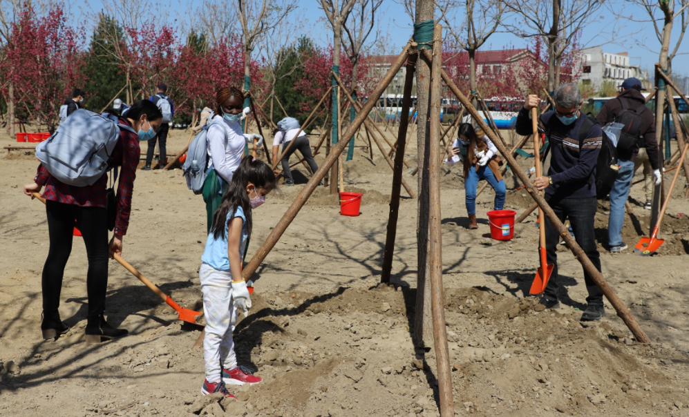 简短仪式后,参加活动的中外友人“撸起袖子加油干”,种下象征中外友好的苗木。主办方介绍,北京是国际交往中心,国际友好林植树活动的举办体现出城市的包容和活力,加深了在京外国友人对北京的亲切感情。活动后,主办方为参加活动的中外友人颁发了“国土绿化荣誉证书”。