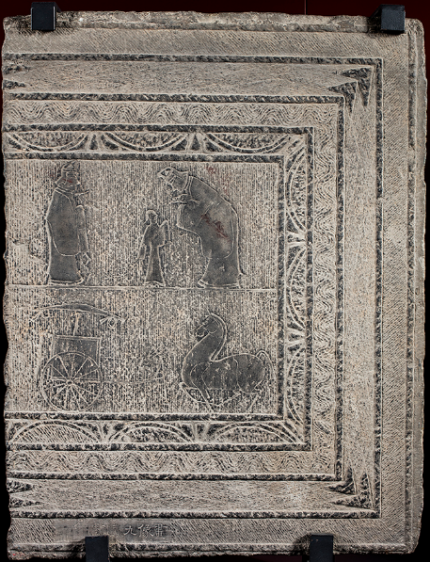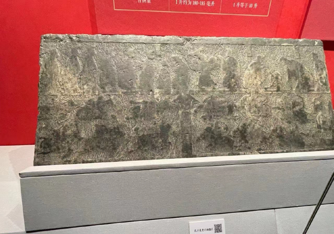 在众多的展品中有一件来自山东博物馆的汉代画像石--孔子见老子画像石。
