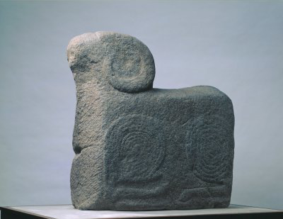 另外还有一件传出自山东临沂石羊镇的汉代石羊。石羊高99厘米,长100厘米。用整块石头圆雕而成,前部刻有铭文“永和五年大□□□月九日西郭记子丁次渔孙仲乔所作羊”。永和为东汉顺帝刘保使用的年号,五年为公元140年。另一件刻有“孝子徐侯”的石羊,从原存放地点、大小型制、雕刻手法上看应是一对。二者联系考察,孙仲乔应为石匠,即石羊的雕刻者,出资者为徐侯。