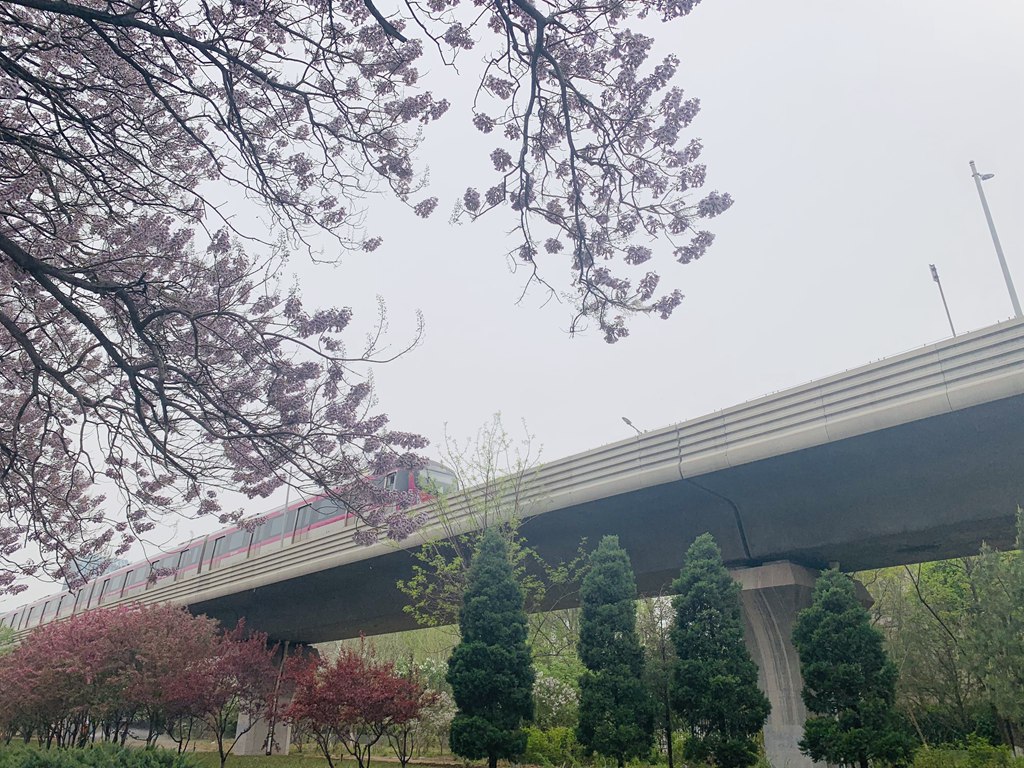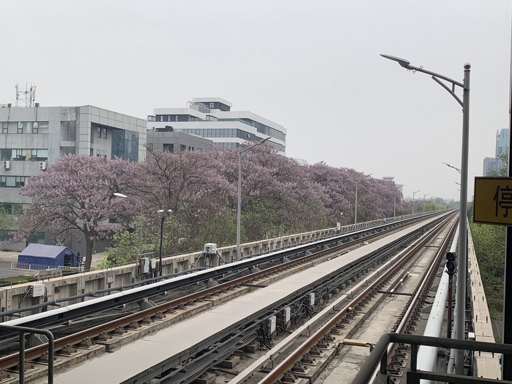 记者乘坐北京地铁亦庄线前往“泡桐大道”,列车伴随泡桐树一路驶向春天。由于人不是很多,车上有不少乘客一边侧坐聊天,一边在地铁上欣赏一片一片的泡桐花海。从万源街站出来,一片紫色粉白,恍如隔世。阵阵清香随着微风弥漫开来,沁人心脾。地铁亦庄线延着轨道线穿行于花海,仿佛一趟开往春天的列车。