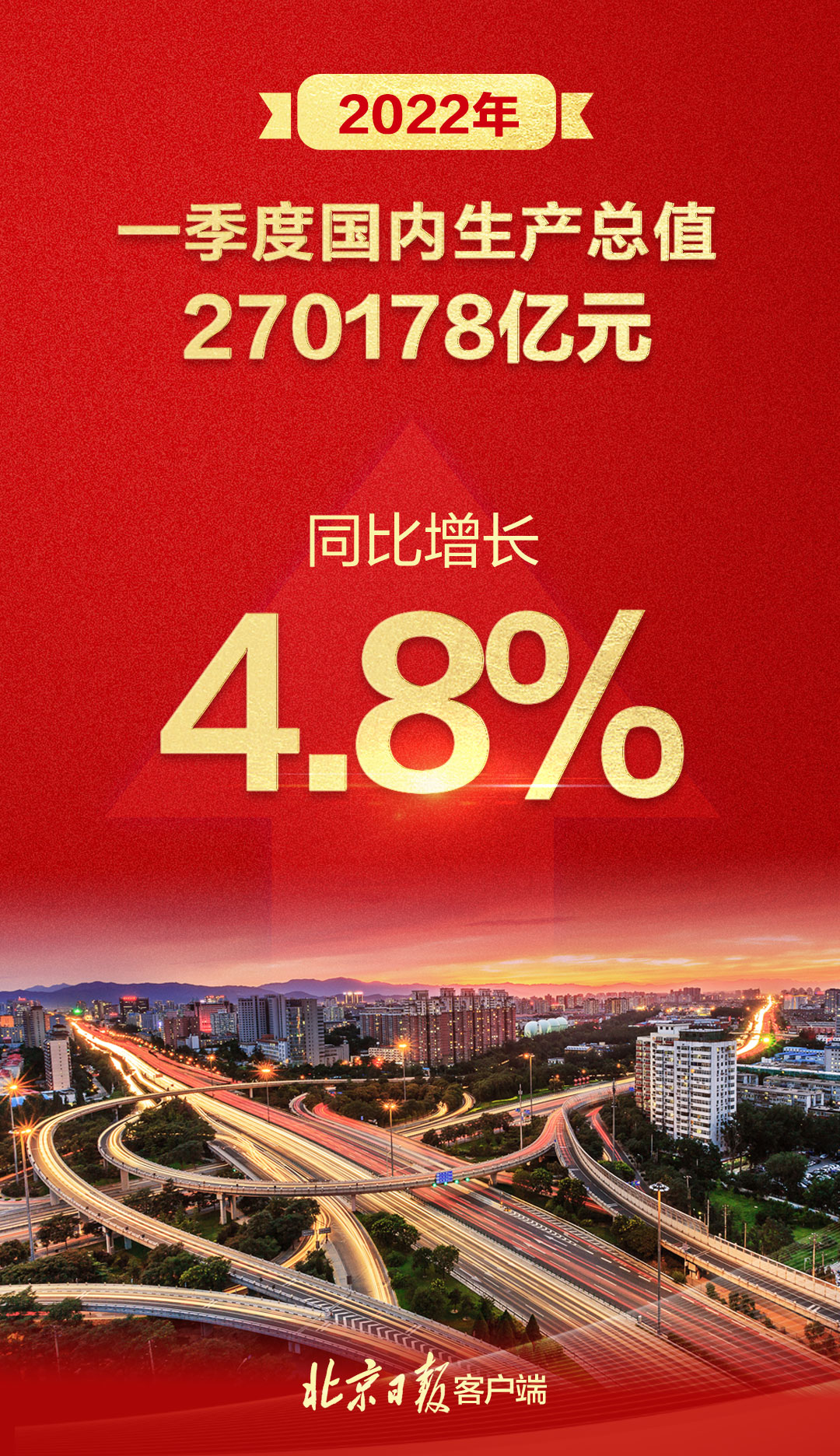 初步核算,一季度国内生产总值270178亿元,按不变价格计算,同比增长4.8%,比2021年四季度环比增长1.3%。分产业看,第一产业增加值10954亿元,同比增长6.0%;第二产业增加值106187亿元,增长5.8%;第三产业增加值153037亿元,增长4.0%。