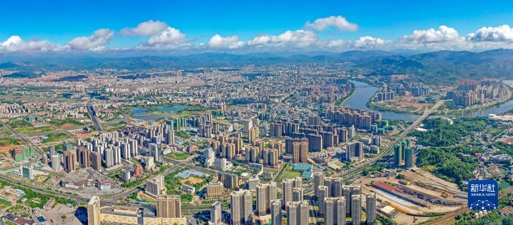 这是2020年8月14日拍摄的广东省梅州市风光(无人机照片)。