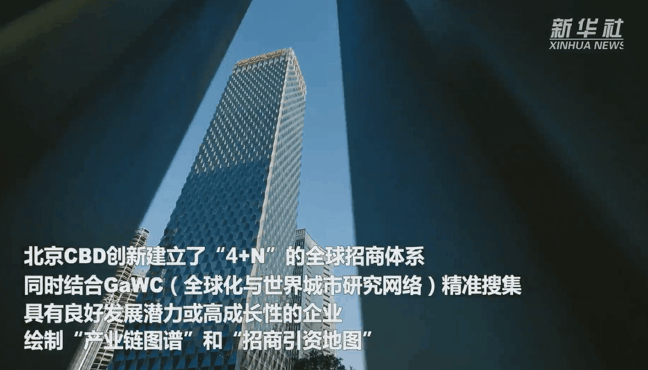 目前,北京CBD创新建立了“4+N”的全球招商体系,即1本目录、1支队伍、1套政策、1个大厅和N个招商联络站,编制了产业指导目录和招商引资目录,引导市场精准招商。