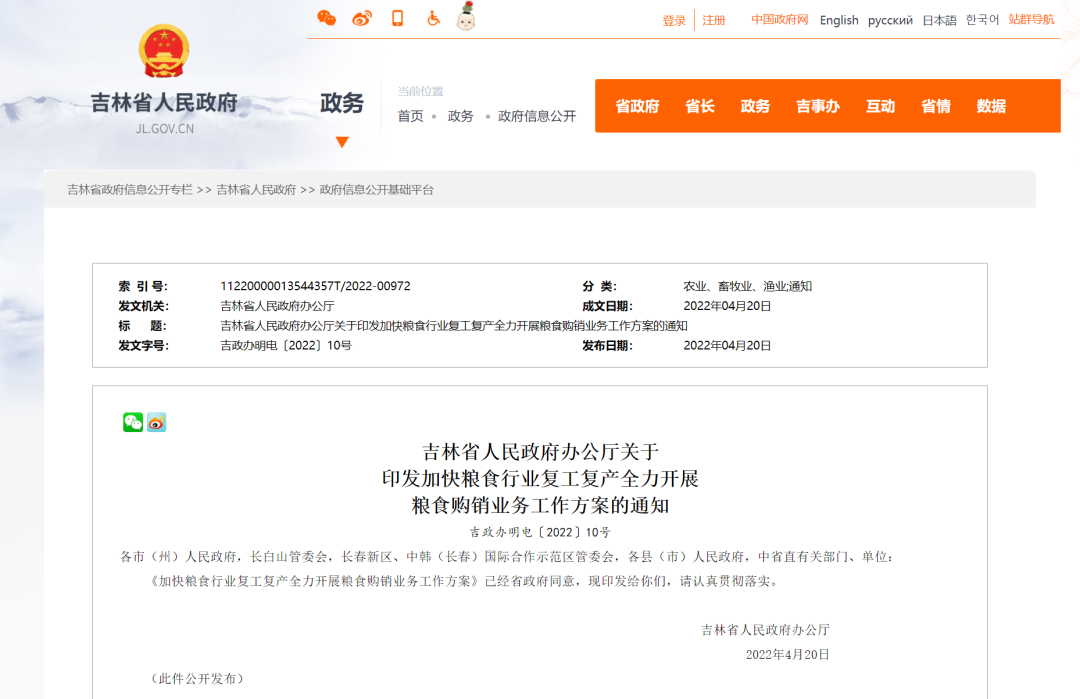 《加快粮食行业复工复产全力开展粮食购销业务工作方案》已经省政府同意,现印发给你们,请认真贯彻落实。