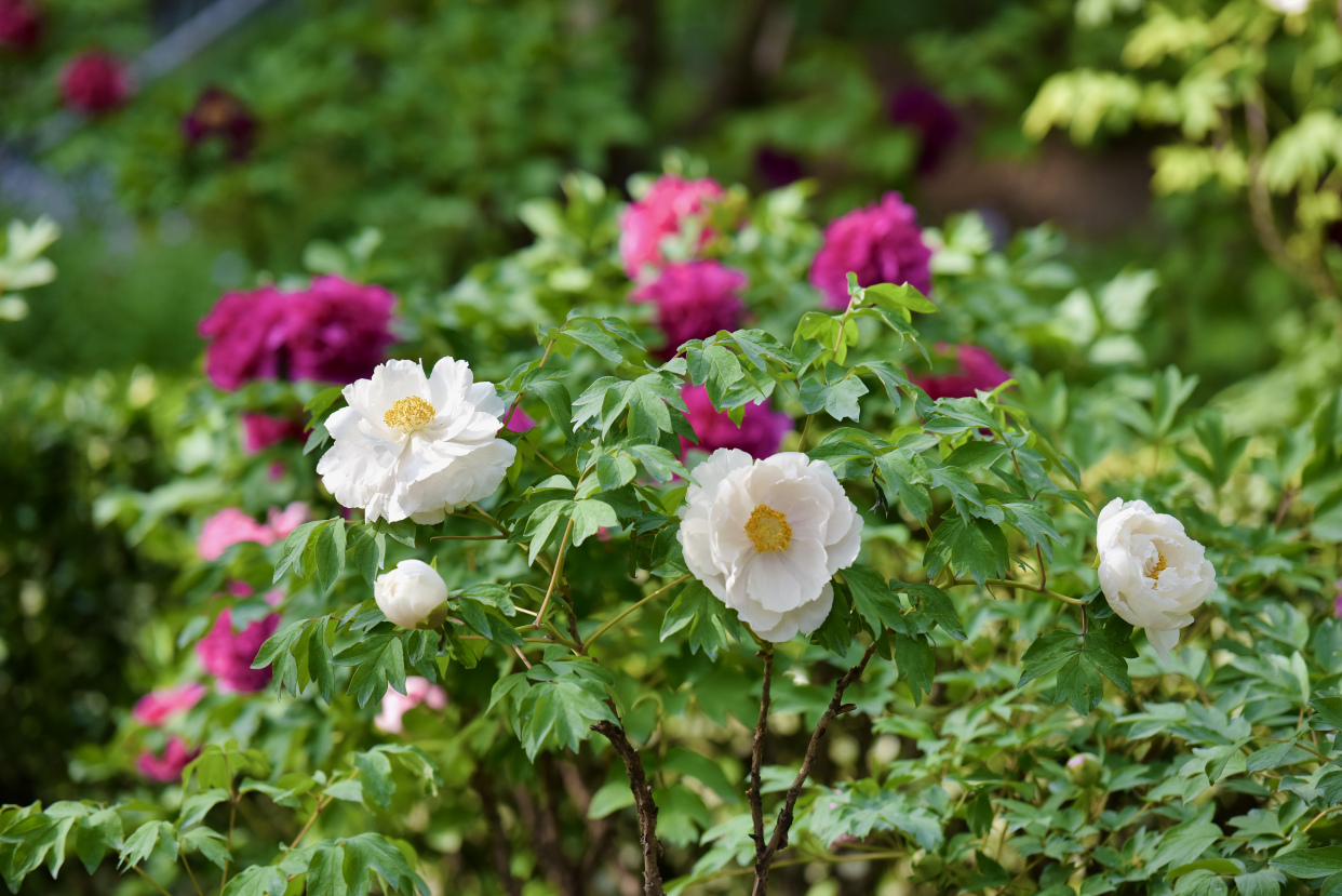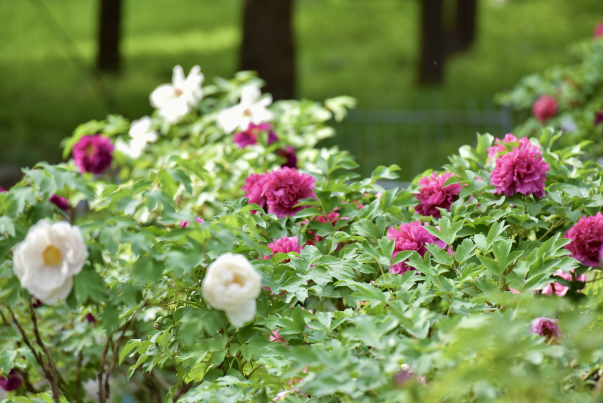牡丹素有“花中之王”的美誉,陶然亭公园“国色迎晖”景区靠近东门入口,栽植了包含“乌龙捧盛”、“银红巧对”、“霓虹幻彩”等30余个品种、近2000株的各色牡丹。