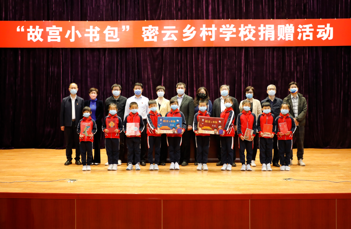 这次密云捐赠活动由故宫出版社和密云区委教育工委共同主办。每所学校捐赠了一个“故宫小书包”。每个书包内含有69本图书,包括《故宫藏画的故事》《瓷器的故事》《历代法书碑帖经典》《故宫画谱》《故宫知时节》《建筑紫禁城》《跟着王希孟游千里江山》《故宫神兽》等近年来备受读者欢迎的故宫图书。这些书都是故宫出版社出版,讲述着建筑、历史、书法、绘画、器物等中华优秀传统文化的通识知识。