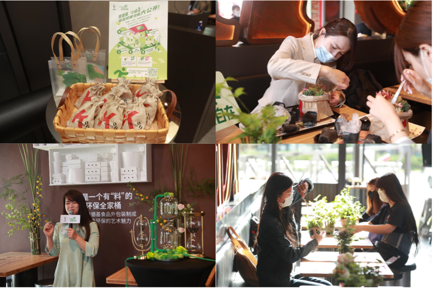 实体“小绿店”在整体设计、设备研发选择和材料应用上遵循了减量(Reduse)、回用(Reuse)、循环(Recycle)、替代(Replace)的4R原则,有效实现餐厅运营减少碳排放的同时,也为消费者打造了一个全方位体验、了解和参与减碳环保的绿色餐厅空间。