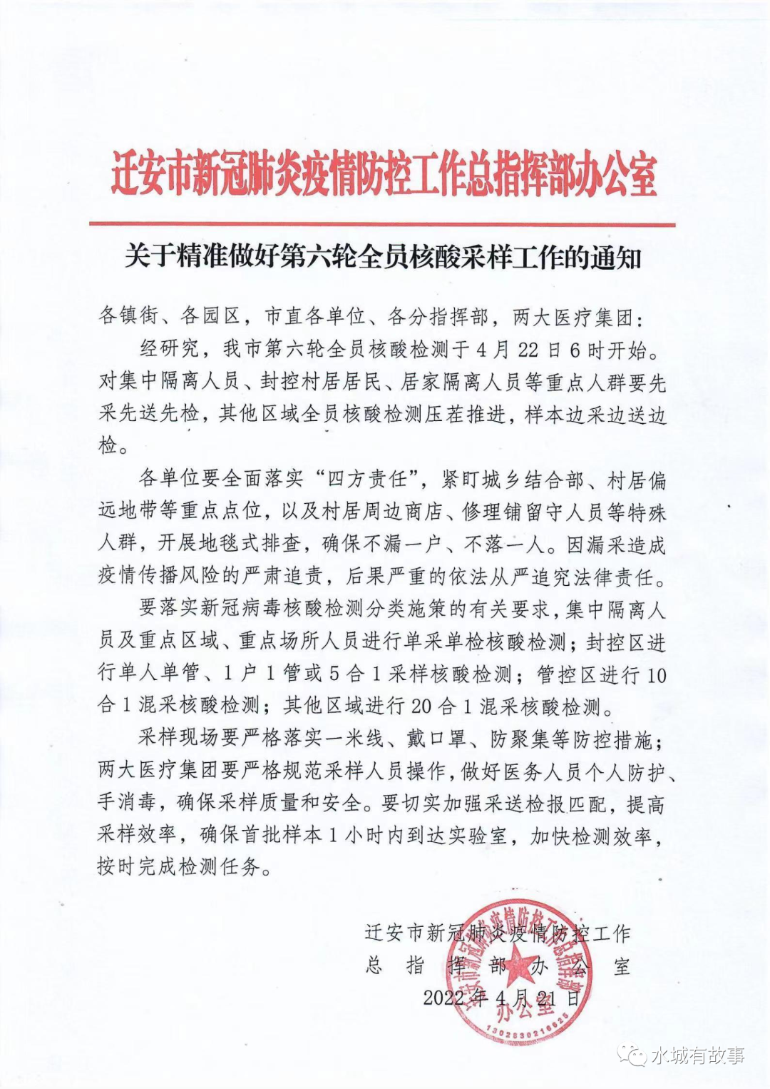 1.4月22日5:00起,主城区(安州街道、苔山镇)暂时管控,其他23个乡镇14:00暂时管控(全员核酸检测需要,大家不要恐慌、请勿抢购)。解除时间待县疫情防控指挥部下达命令后,将及时通告。
